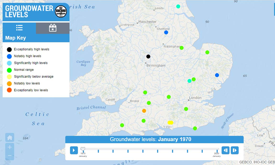 Groundwater levels timeline British Geological Survey