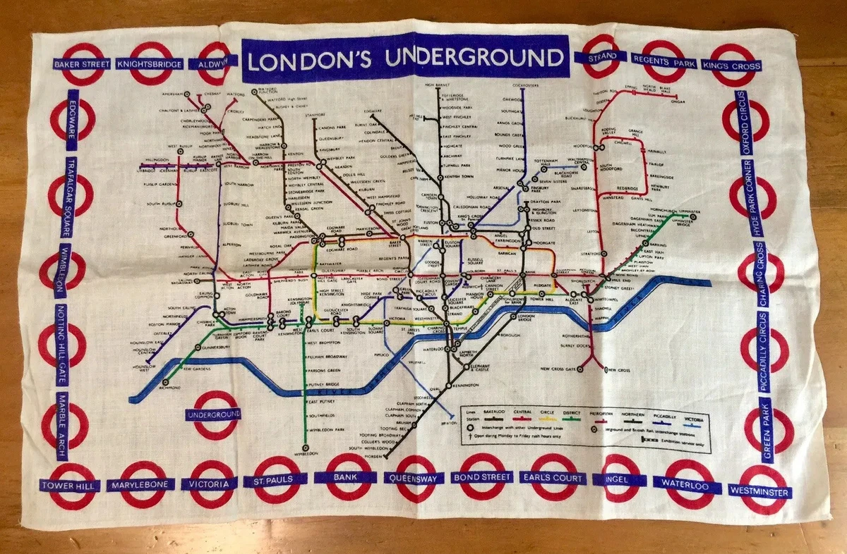Vintage THE LONDON UNDERGROUND MAP Linen Tea Towel Hand Towel | eBay