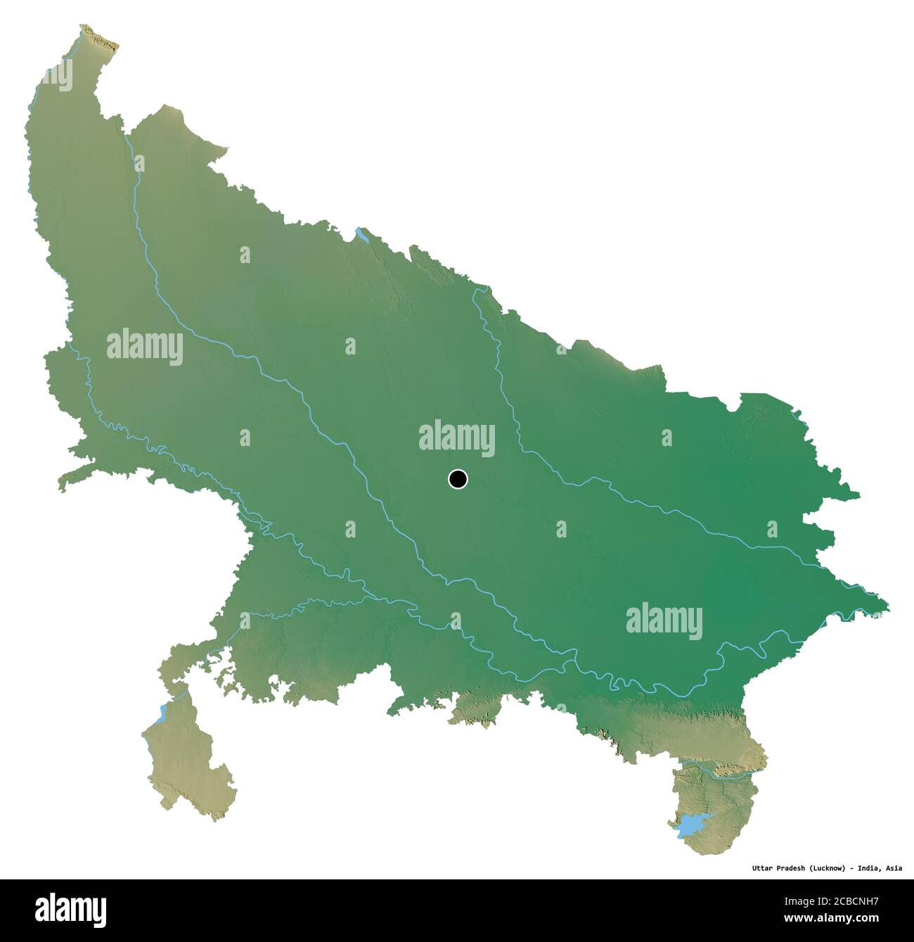 Uttar Pradesh state map, Indian state border capital lucknow Stock