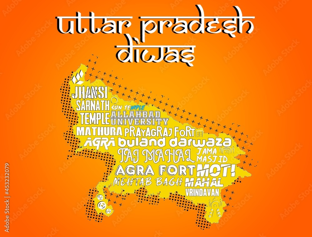 Uttar Pradesh Diwas/Day 3D Vector Map with famous monuments and